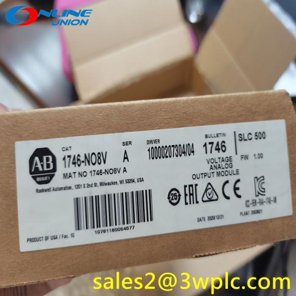 The Allen-Bradley 1746-NO8V is an analog output module that is compatible for use with SLC 500 controllers. This module provides voltage output signal ranging from ±10.25VDC. This module is ideally used to control modulating devices such as valves, dampers, Variable Frequency Drives (VFD), Louvers, and other devices that operate with analog signals.